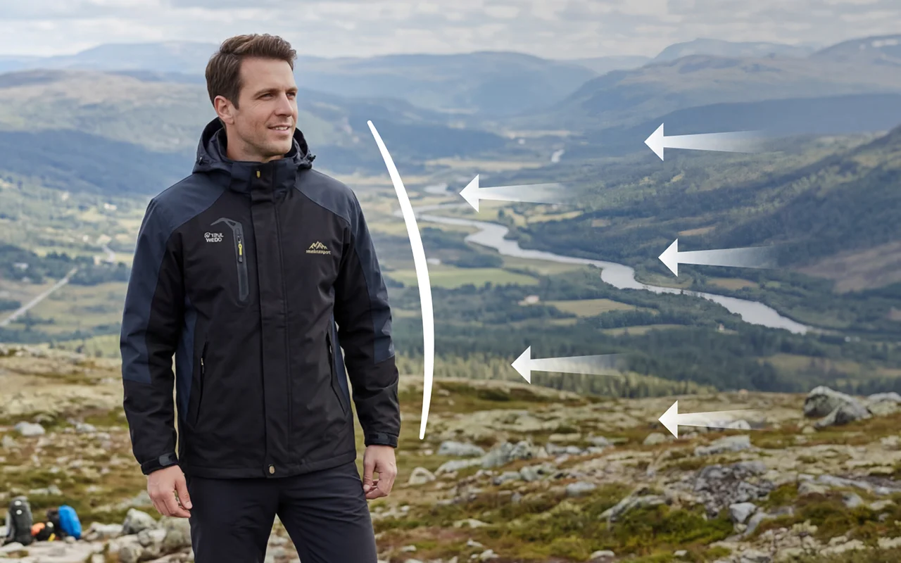Ráfagas frias ficam do lado de fora graças às camadas de tecido de alta densidade. A temperatura permanece estável enquanto você explora ou escala.