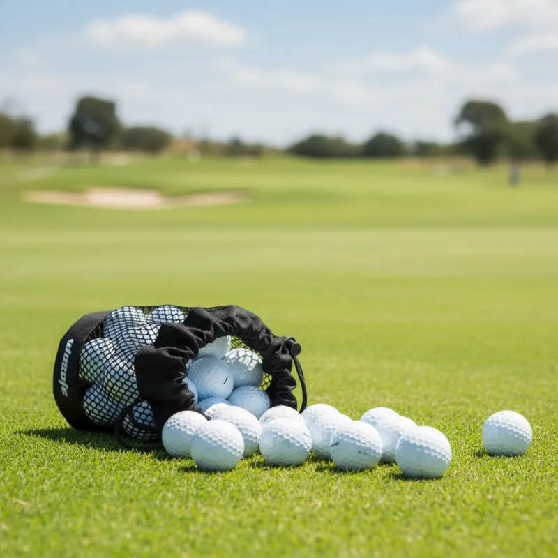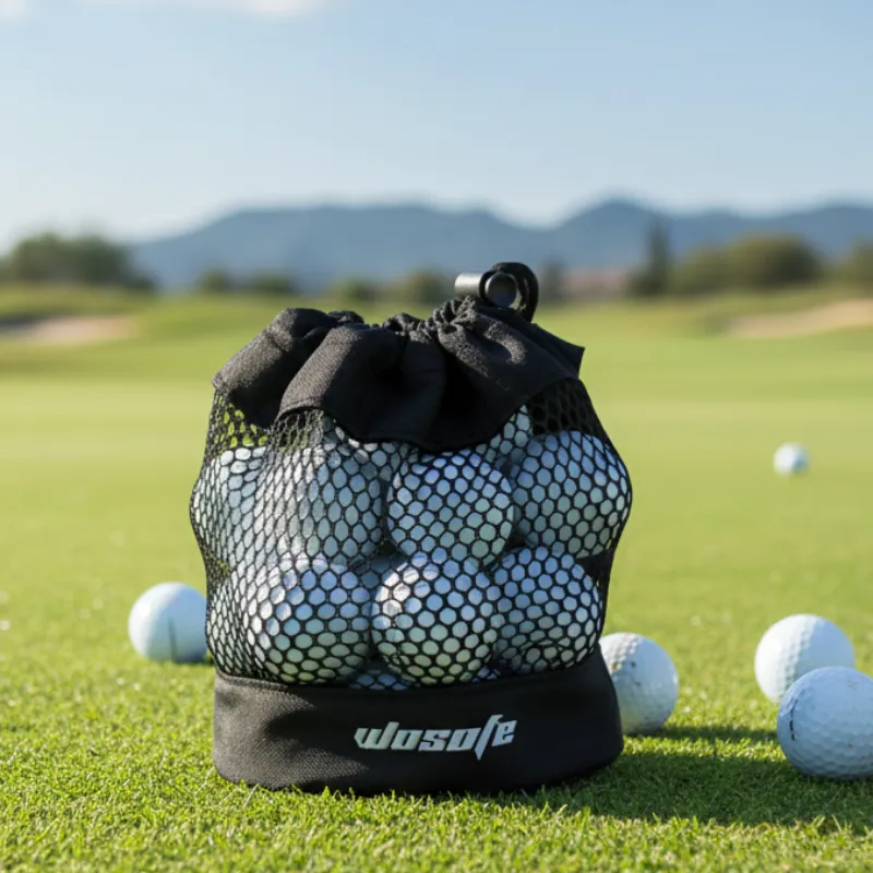 A bolsa de rede me ajuda a manter minhas bolas de golfe em um só lugar, muito mais fácil de encontrar do que bolas soltas rolando por aí.