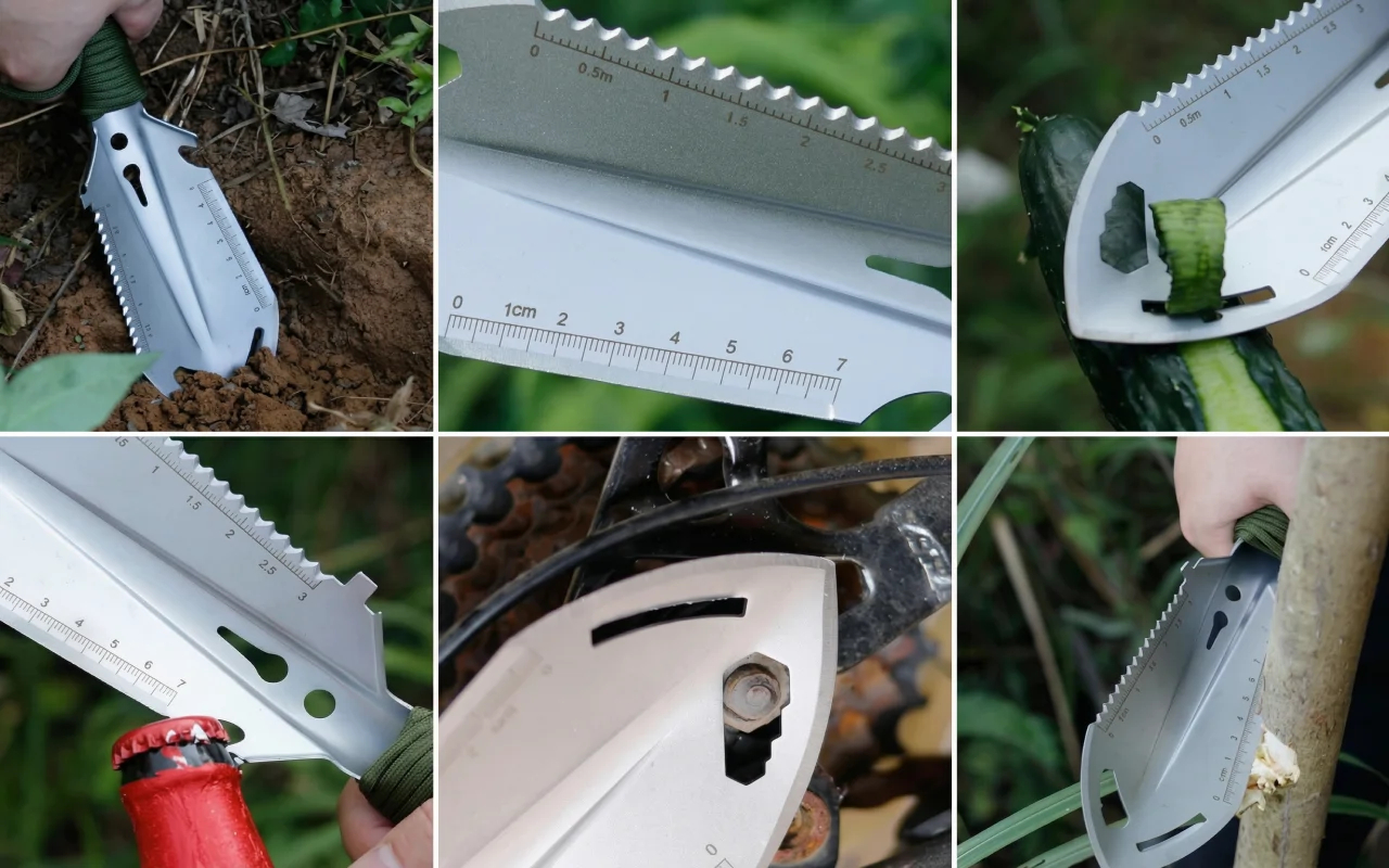 Levei esta pá em uma viagem de camping de fim de semana e usei para tudo, desde cavar uma fogueira até cortar gravetos e até medir o espaçamento das barracas.