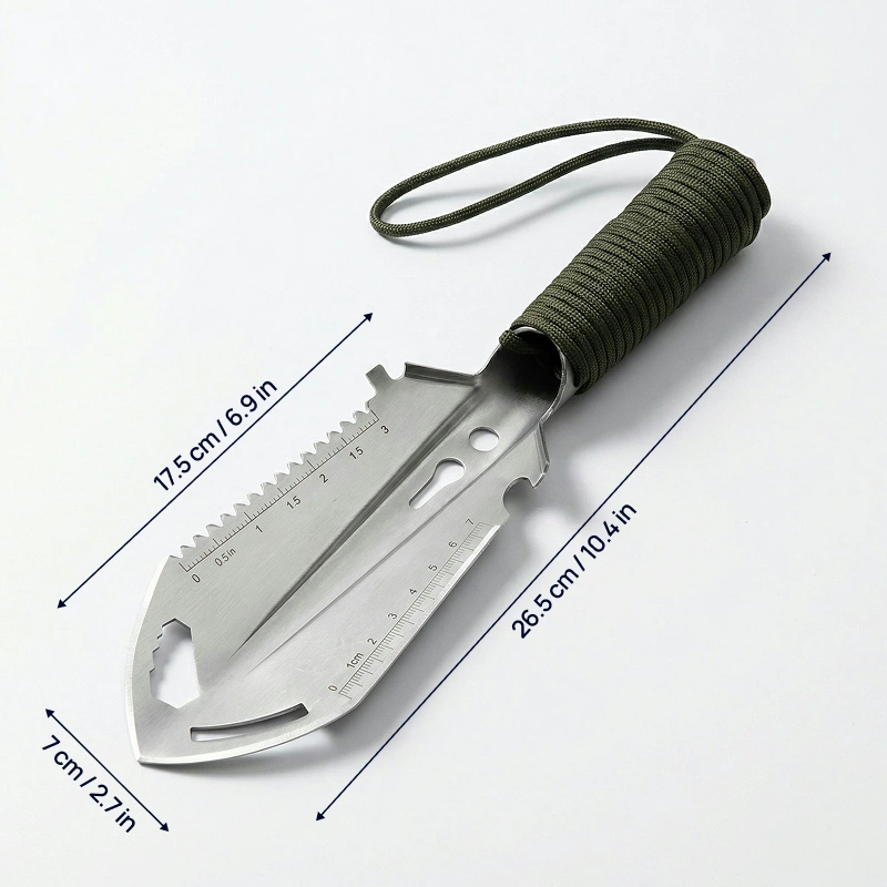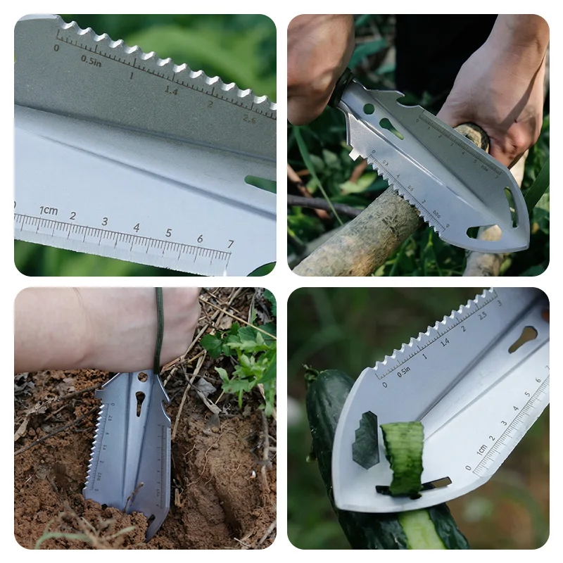 Enfrente qualquer aventura selvagem sem preocupações ou complicações. A pá de camping Threo torna cada tarefa ao ar livre rápida e fácil. Cave, corte, meça ou serre com apenas uma ferramenta resistente. Desfrute de tranquilidade sabendo que você está pronto para qualquer coisa. Mantenha-se preparado onde quer que sua jornada o leve.