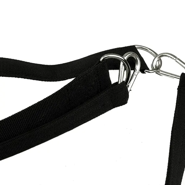 O nosso dispositivo possui vários anéis em D. Pode ajustá-los ao cabo de uma máquina de pesos ou a pesos livres como kettlebells com corrente. Essa versatilidade permite encontrar ângulos para treinar os músculos do pescoço de forma eficaz.