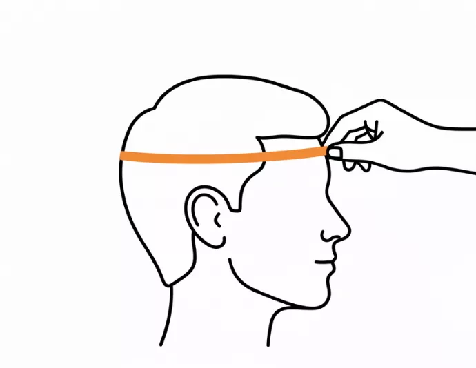- 1. Envolva a fita métrica ao redor da parte mais larga da cabeça, logo acima das sobrancelhas e das orelhas.