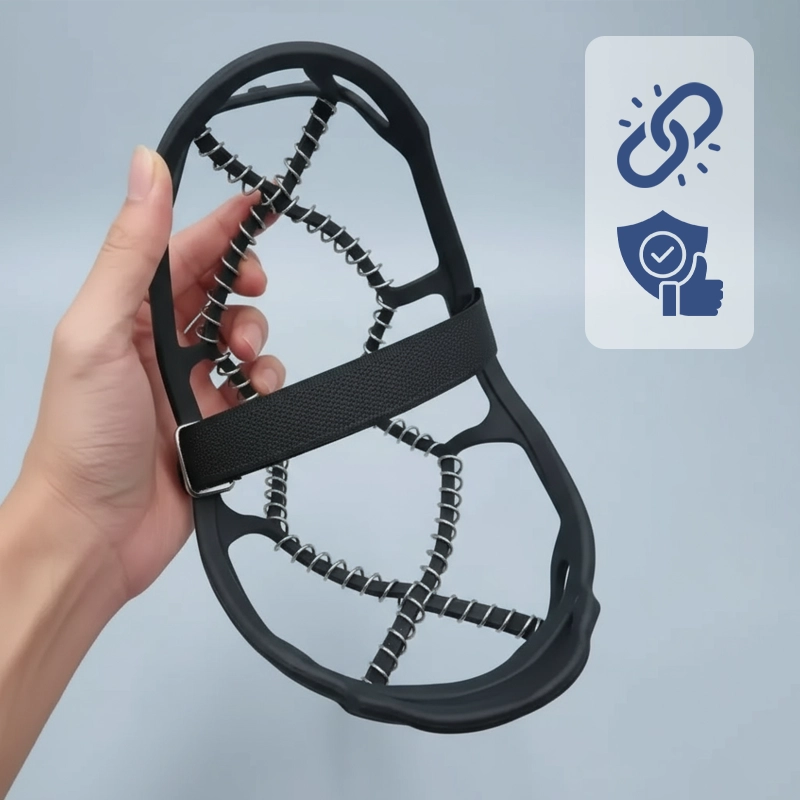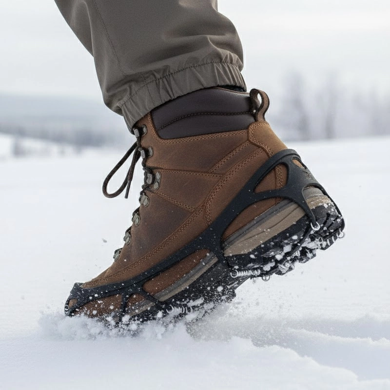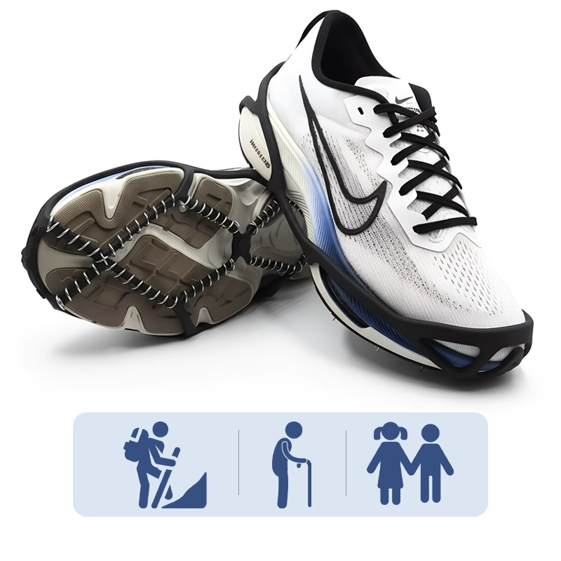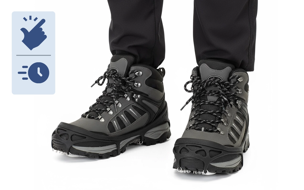 Desfrute de passos firmes ao ar livre sem qualquer preocupação ou medo. As garras de gelo Threo se ajustam à maioria dos tênis, botas de caminhada ou sapatos resistentes. Bobinas de aço agarram neve compacta e calçadas geladas com segurança. Movimente-se livremente em qualquer aventura de inverno ou caminhada diária.