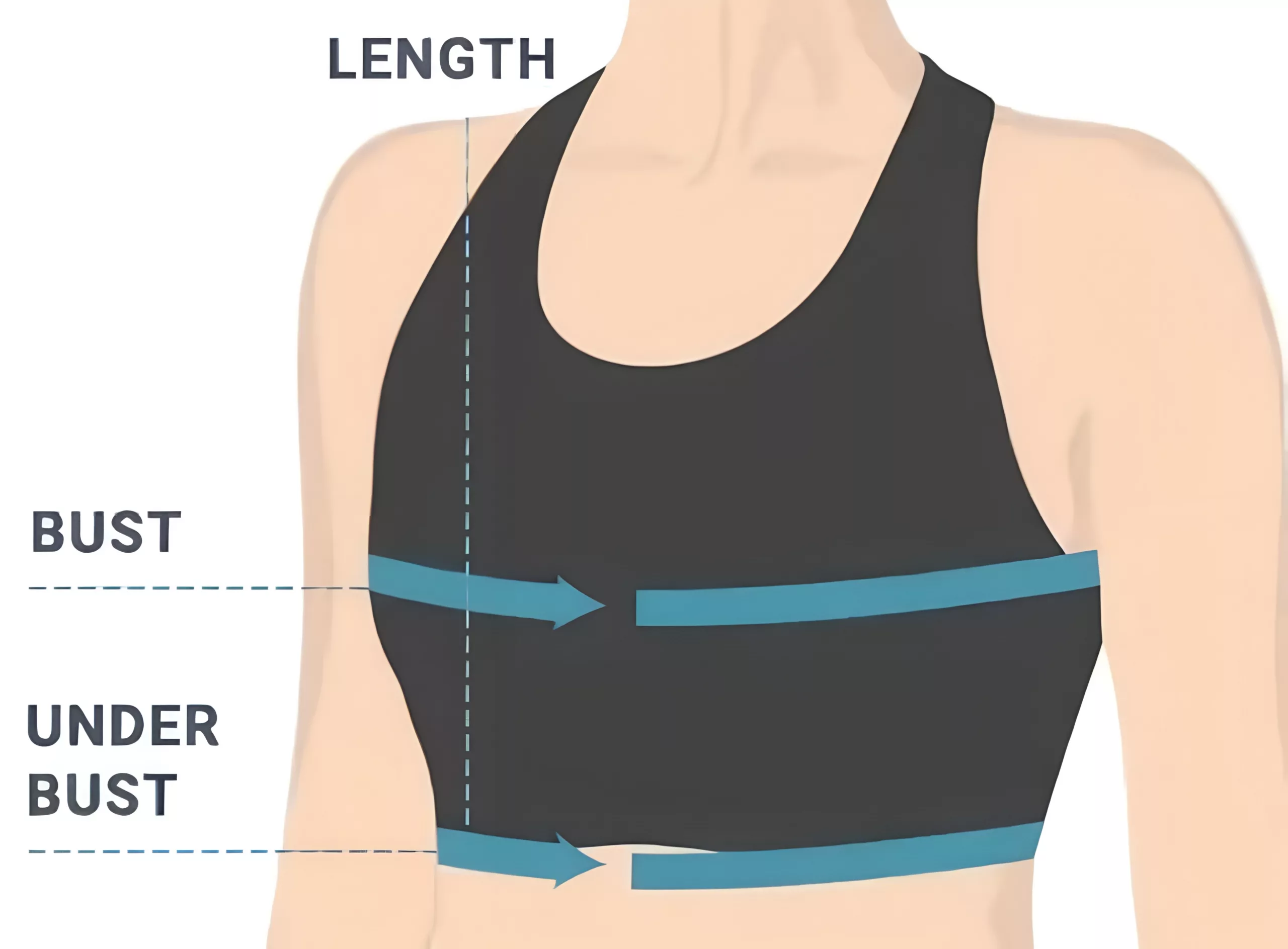 - 3. Envolva a fita métrica ao redor de sua caixa torácica, diretamente e uniformemente sob o busto.