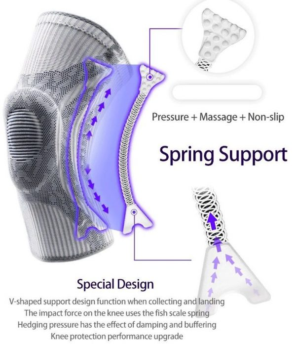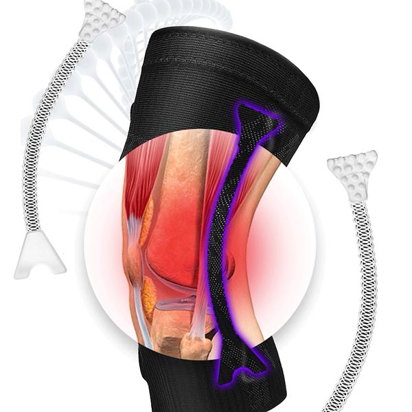 Esta joelheira almofadada oferece proteção dupla. A mola em escama de peixe alivia a pressão no joelho, e a almofada reforçada protege o menisco. O material macio de neoprene com amortecedor mantém o seu joelho aquecido, lubrificando as articulações. Além disso, a tecnologia única de tecelagem na fossa poplítea em ambos os lados da costela de suporte previne lesões.