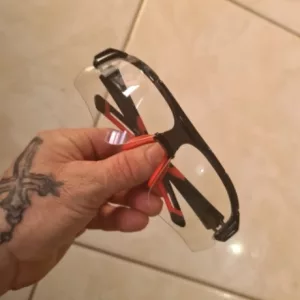Com um design especial de revestimento, a lente é antiembaçante, hidrofóbica, repelente a sujidade e óleo. A lente dos óculos é feita de PC (policarbonato). Este material bloqueia 100% dos raios UVA, UVB e UVC, assim como a luz azul nociva até 400 nm. As almofadas de silicone macio para o nariz ajustam-se perfeitamente a qualquer formato de nariz, garantindo o melhor conforto ao usar. Além disso, a construção sem aro não bloqueia a visão e proporciona uma visão periférica mais clara.