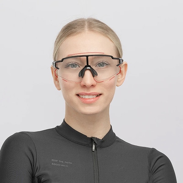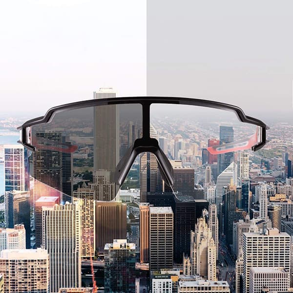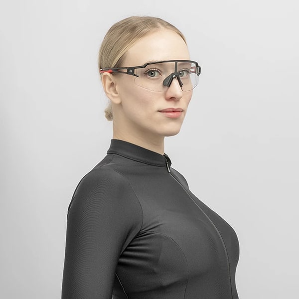Os Óculos de Ciclismo Fotocromáticos THREO protegem perfeitamente a sua visão contra a luz solar intensa. As lentes ajustam automaticamente o nível de escurecimento e brilho consoante os diferentes graus de radiação ultravioleta. Além disso, os nossos óculos oferecem uma adaptação perfeita a todas as condições de luz e clima. Graças a esta tecnologia, nunca precisará de trocar de óculos ao realizar diferentes atividades ao ar livre. Para além disso, as lentes alargadas proporcionam um campo de visão maior e protegem os seus olhos do vento, pó e mosquitos.