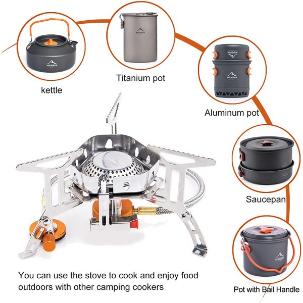 ✔️ COMPATÍVEL COM OUTROS FOGÕES DE CAMPISMO — Este fogão a gás pode ser usado com diferentes tipos de panelas de campismo, como panela de alumínio, panela de titânio, caçarola, etc.