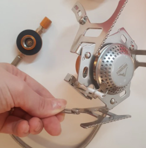 Outra ótima característica deste fogão de campismo é a chama ligeiramente mais larga, que é melhor para cozinhar alimentos que exigem uma distribuição de calor mais uniforme. O design integrado do para-brisas pode melhorar eficazmente a eficiência térmica do fogão. Basta rosquear o cartucho e pressionar o interruptor de ignição para acender; não é necessário pederneira adicional. Com o botão de ajuste da chama, pode regular a chama conforme necessário. O design de centro de gravidade baixo mantém o fogão firmemente no chão. O fogão é feito de liga de alumínio e aço inoxidável para resistir a riscos e corrosão. Além disso, o queimador é sólido e resistente a altas temperaturas. Possui longa vida útil.