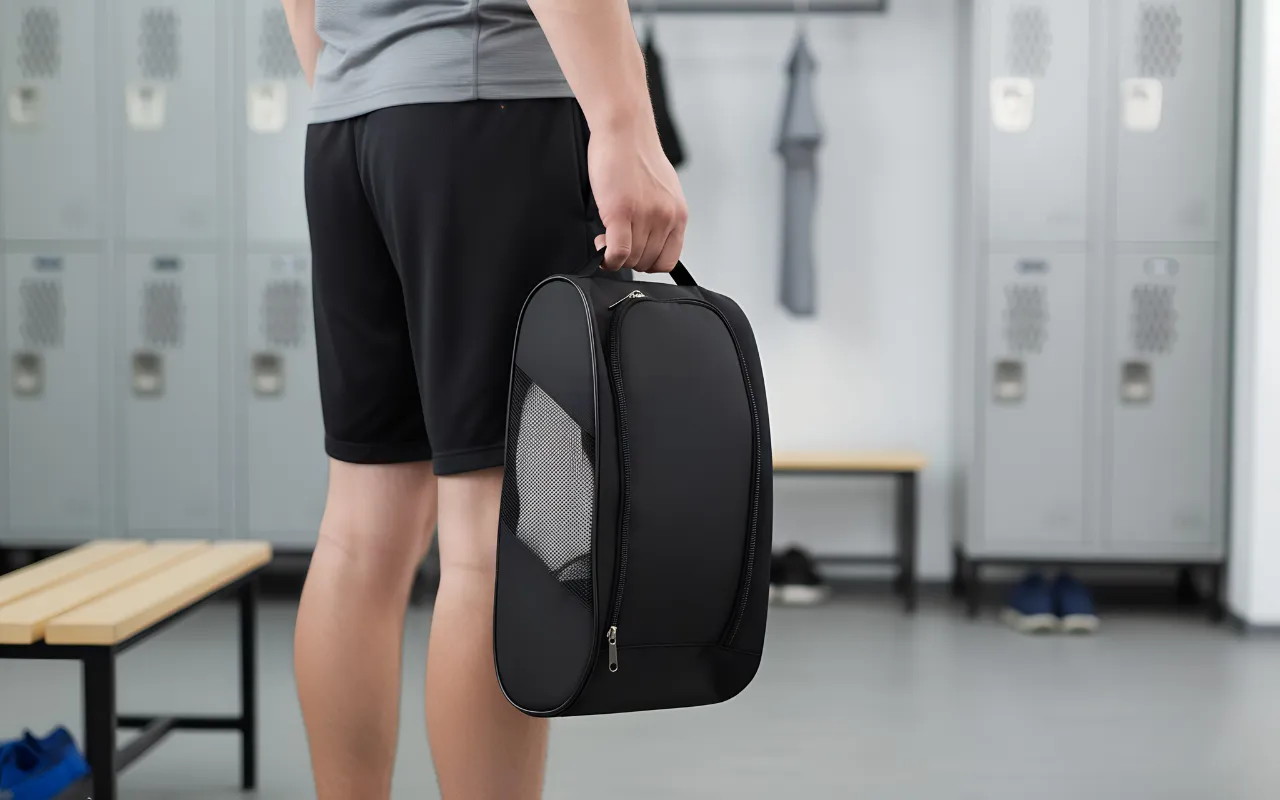 O design compacto permite que você carregue tênis sem volume ou desconforto. A alça facilita pegar seus sapatos rapidamente antes do treino.
