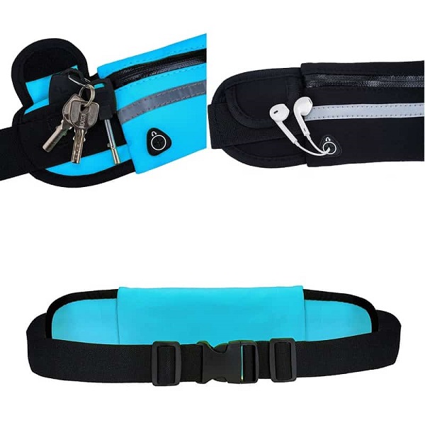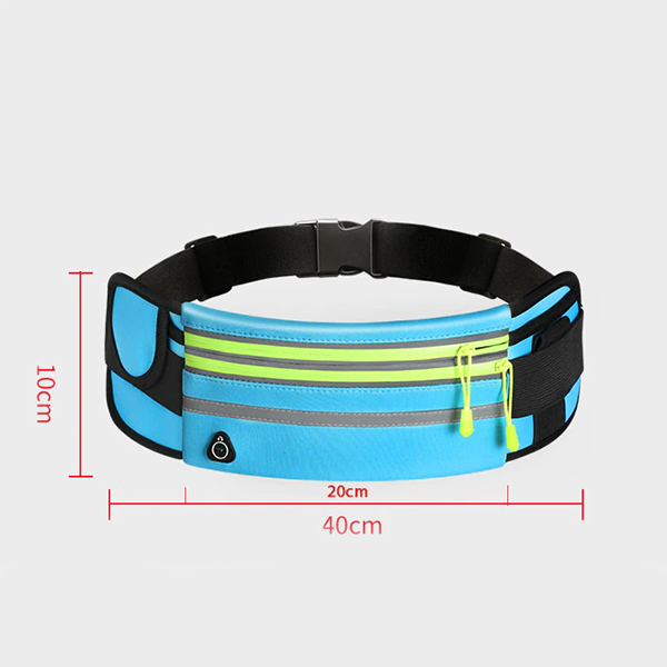 A pochete para corredores possui uma alça ajustável que pode ser facilmente regulada para se adequar ao tamanho da sua cintura. Também conta com uma faixa refletora na parte frontal. Quando exposta à luz no escuro, ela reflete a luz de volta à sua fonte, tornando-o visível em condições de pouca luz e prevenindo acidentes de viação.