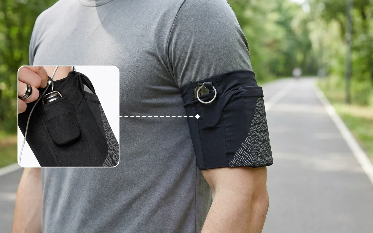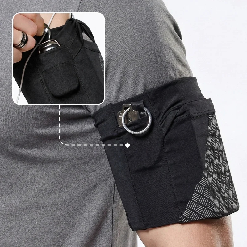 Mantenha o foco em cada passo usando a braçadeira Threo. Este design leve mantém os itens essenciais seguros durante longos treinos. Curta músicas facilmente enquanto os bolsos guardam chaves e moedas com segurança.