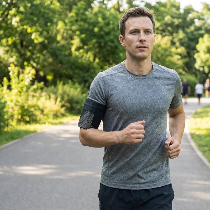 Muito confortável no braço! Meu celular cabe perfeitamente e mal percebo que está lá enquanto corro pela manhã.
