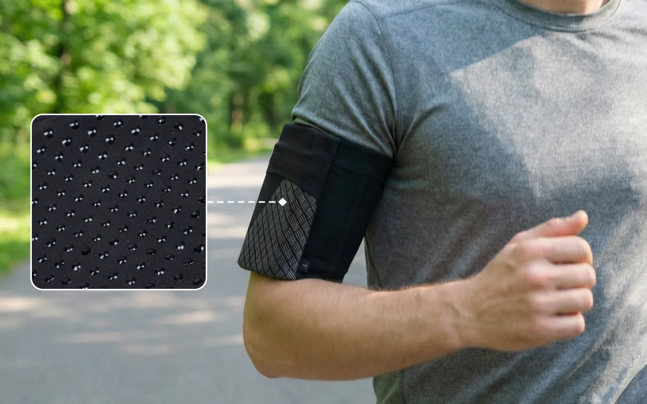 O forro de silicone antiderrapante oferece estabilidade incomparável durante o movimento. Você não sentirá nenhum deslizamento ou desconforto em nenhum ritmo.