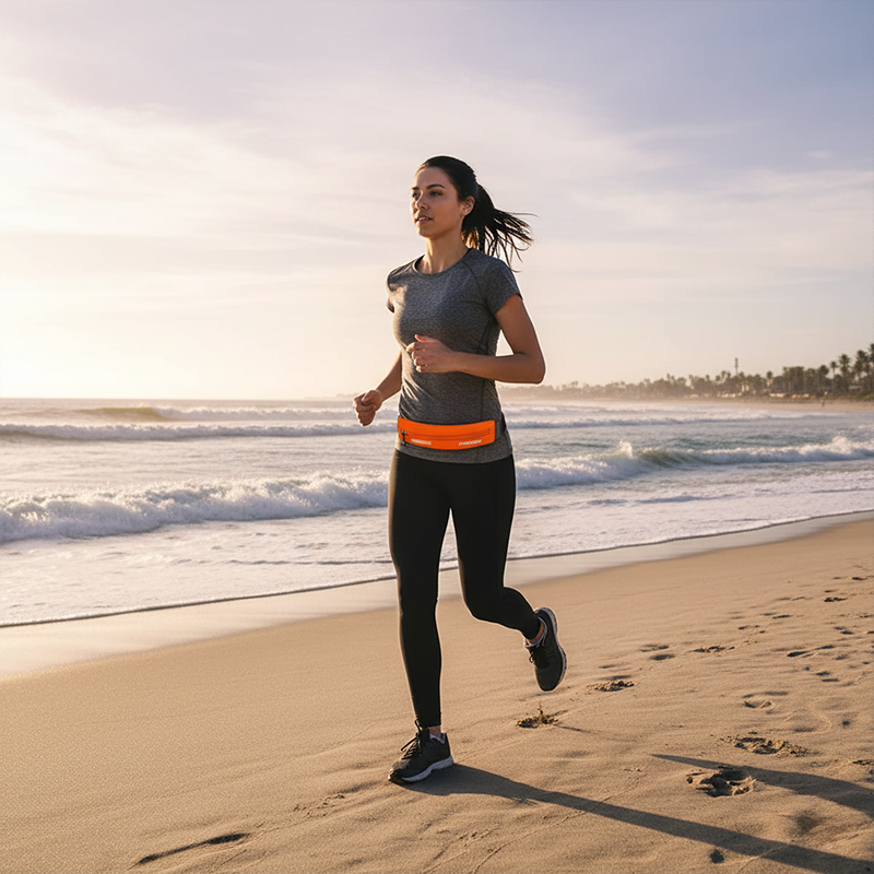 A pochete é feita de Neoprene e fica perfeitamente ajustada ao corpo durante a corrida. É compacta, mas espaçosa: cabe o seu telemóvel, uma chave, um álcool em gel e vários pequenos itens.