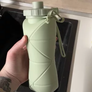 A nossa garrafa pode ser convenientemente dobrada quando não estiver a ser utilizada. É ideal para viagens, caminhadas ou qualquer atividade ao ar livre.