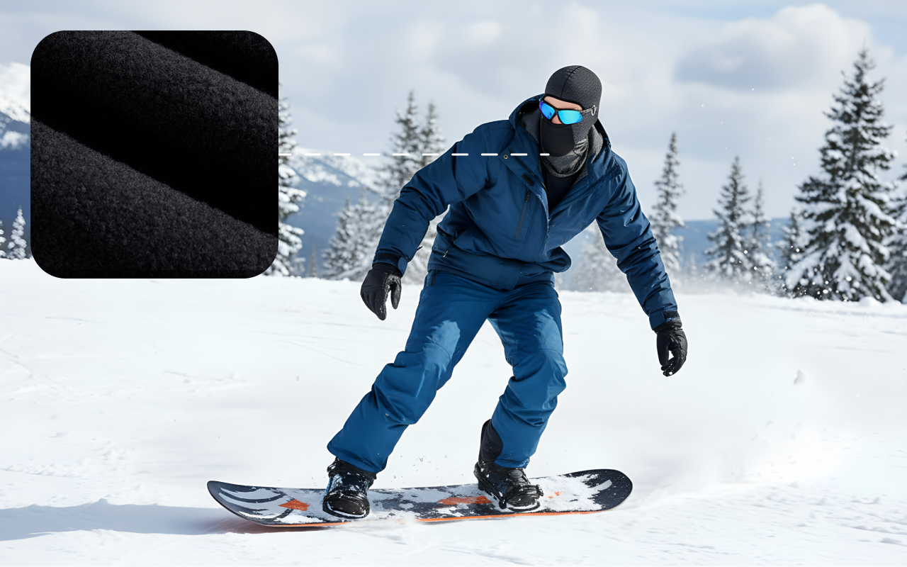 O fleece catiônico forma uma barreira forte contra rajadas intensas. Sua pele permanece protegida e livre de desconforto.