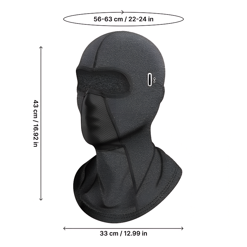 A touca se estica para se adaptar a diferentes tamanhos sem escorregar. Óculos e capacetes encaixam perfeitamente para maior praticidade no dia a dia.