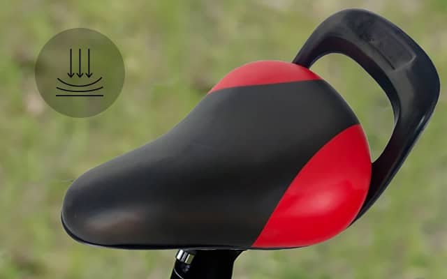 O assento Threo para bicicleta é feito com espuma viscoelástica larga e espessa. Isto reduz a probabilidade de dores e fadiga durante os passeios.
