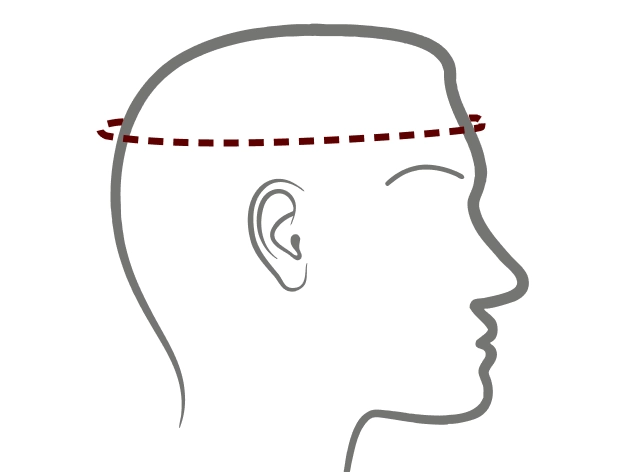 - 1. Enrole a fita métrica ao redor da parte mais larga da cabeça, logo acima das sobrancelhas e orelhas.