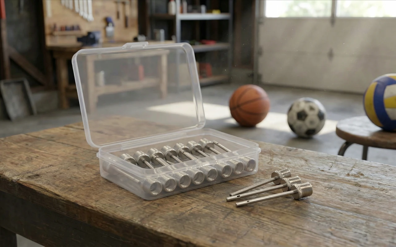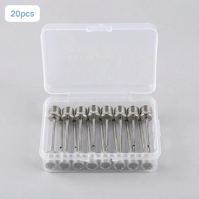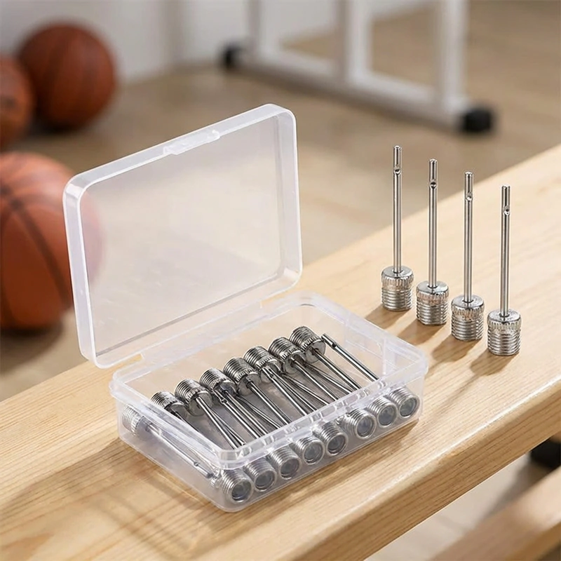 Comprei o conjunto de agulhas de inox para as peladas semanais de basquete do meu marido. Ele consegue encher rapidamente a bola de todo mundo, e as agulhas não enferrujam mesmo depois de ficarem em bolsas de academia suadas.