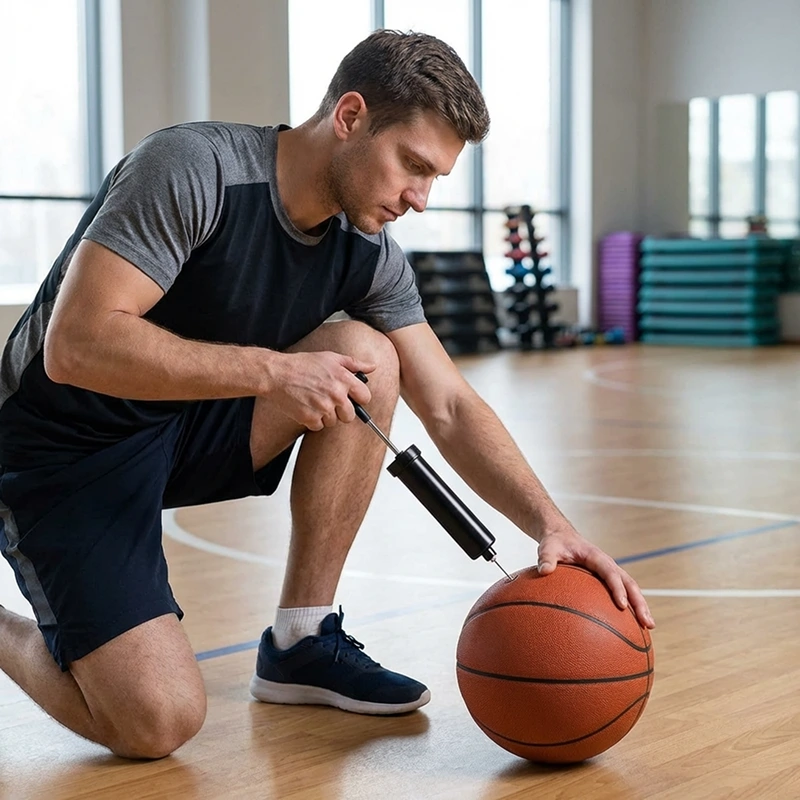 Uso este inflador de metal com a minha bomba de bicicleta nas noites de basquete. A conexão fica firme, sem chiado de ar saindo, e revive bolas murchas rapidamente.