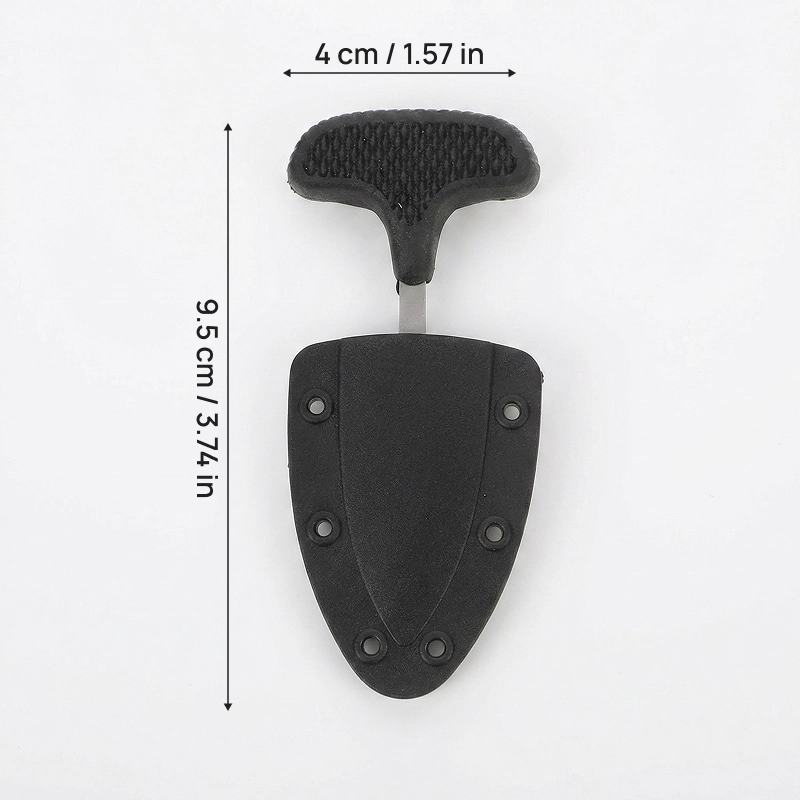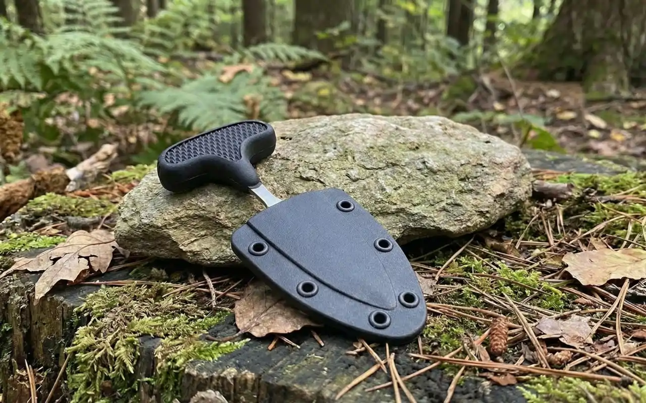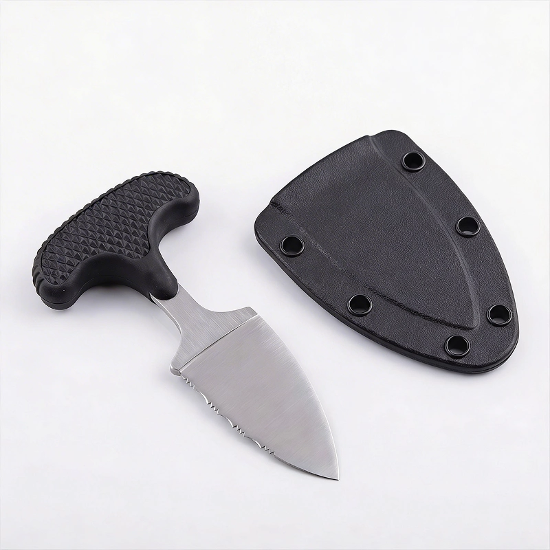 Comprei esta lâmina para o kit de camping do meu irmão. Ele diz que a empunhadura é firme, o aço inoxidável aguenta bem a chuva e o saque rápido ajuda muito durante a montagem.