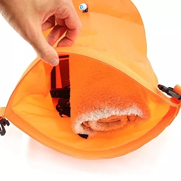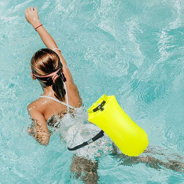 A cor vibrante desta boia de natação aumenta a visibilidade na água. A cor facilita a visualização e atua como uma boia sinalizadora para embarcações. Pode ser usada tanto por adolescentes como por adultos para stand-up paddle, mergulho, snorkel e outras atividades aquáticas. Nesta boia, pode guardar o seu telemóvel, óculos de sol, protetor solar, body glide, máscara de mergulho, câmara, sapatos aquáticos, chaves e outros itens essenciais.