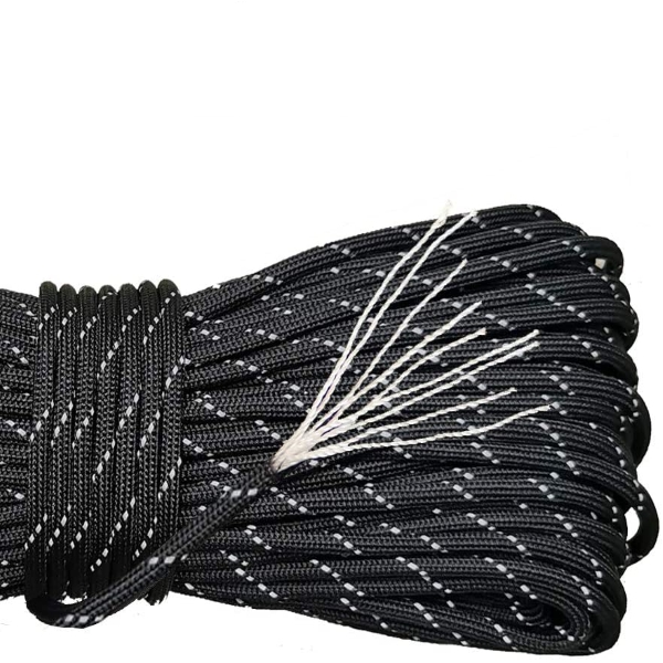 O paracord também pode ser usado em vários cenários ao ar livre, como campismo, caminhadas, pesca, resgate, queda de faca, armadilhas, fabrico de armas e mais. Pode também incluí-lo na sua mochila de sobrevivência. A corda de 250 kg oferece um equilíbrio justo entre força e flexibilidade. A nossa corda utilitária multiusos THREO também possui resistência à humidade, luz solar/UV, produtos químicos e abrasão. Há um fio refletor extra na superfície da corda que se destaca em ambientes com pouca luz. A escolha perfeita para uso noturno ou em situações de emergência.