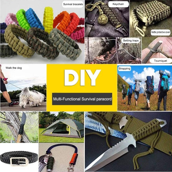✔️ MULTIFUNCIONAL — O paracord tem inúmeras aplicações táticas e militares práticas e, além de fixar barracas, também é usado em situações de sobrevivência, campismo, caminhadas, pesca e até para fazer pulseiras e acessórios.