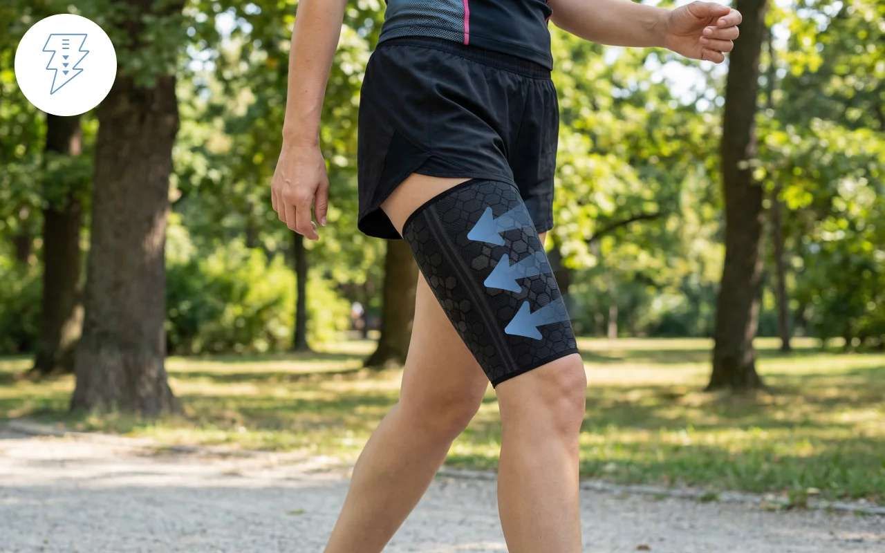 Acalme músculos doloridos rapidamente e reduza dores durante o movimento. Mantenha-se ativo com suporte constante para a parte superior da perna.