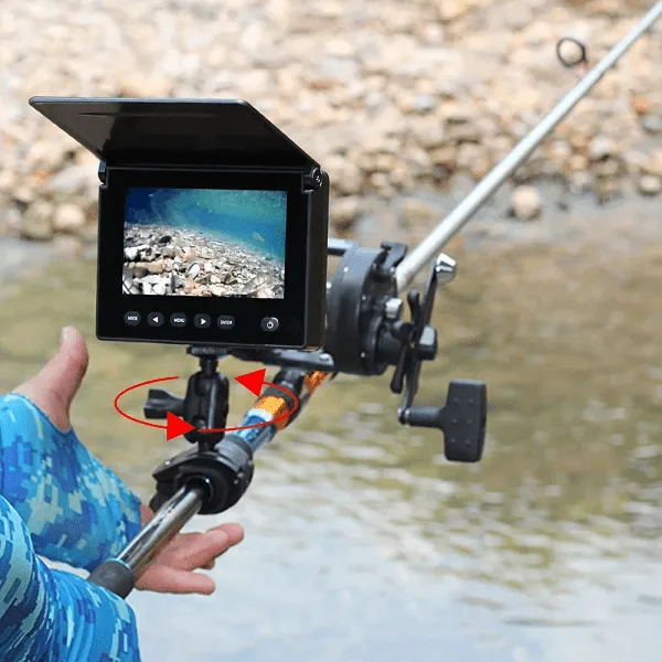 Com cabo de 20 m e ângulo de visão de 185 graus, a nossa câmara de pesca oferece uma visão ampla e desobstruída do mundo subaquático. Uma tampa com abertura de 120 graus protege o ecrã do brilho do sol. Isso proporciona uma visão clara e nítida do que acontece abaixo da superfície em qualquer clima.