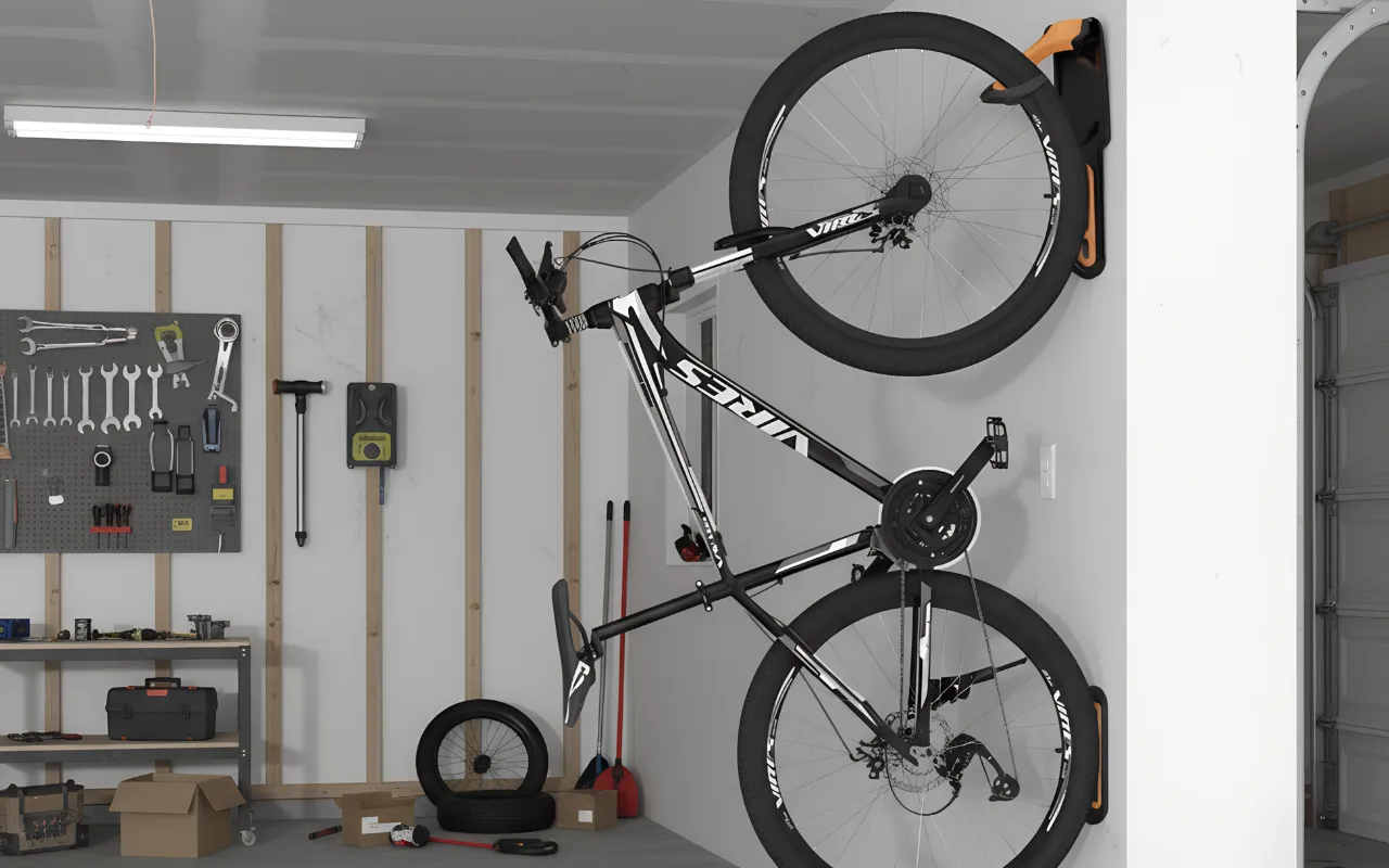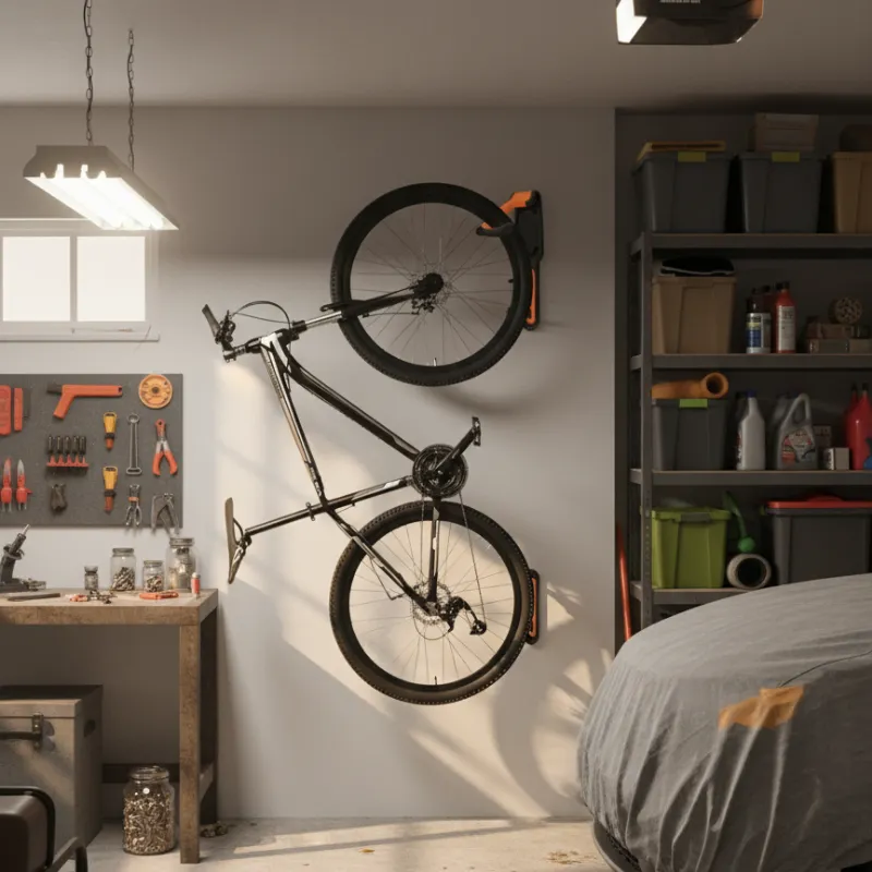 Este suporte deixa minha garagem muito mais organizada. Foi simples de instalar e até cabe a bicicleta de montanha do meu filho. Adoro ter espaço extra no chão agora.