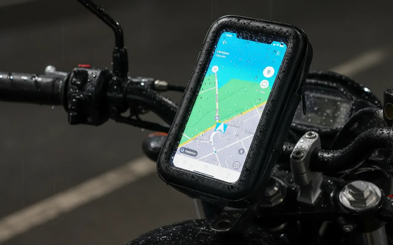 Mesmo depois de um dia de chuva forte, meu celular ficou totalmente seco. É robusto e segura firmemente o guidão, mesmo em estradas ruins.