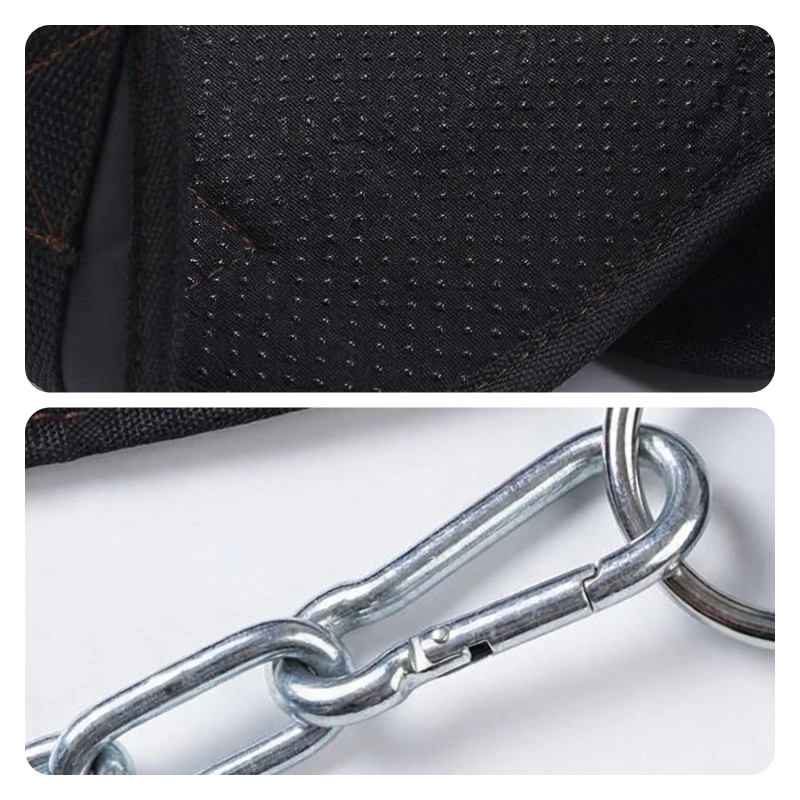 Corrente resistente e costura reforçada suportam peso pesado sem falhas. Conte com essa ferramenta para inúmeras sessões de treino futuras.