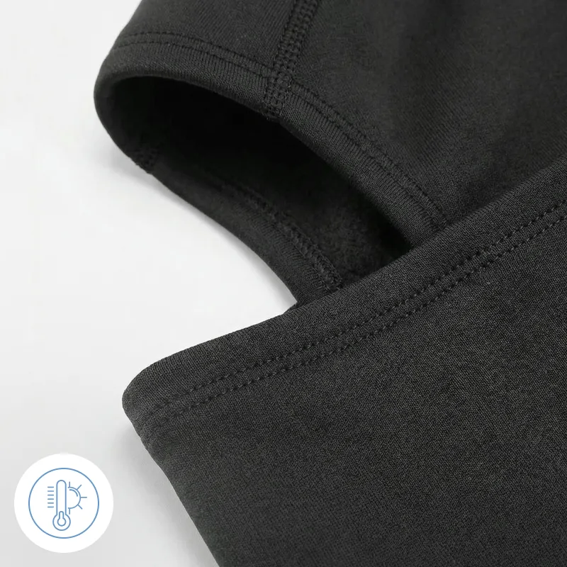 Uso esta máscara sob meu capacete de esqui. Minhas orelhas ficam bem quentinhas e o tecido fino e elástico não fica volumoso nem apertado na testa.
