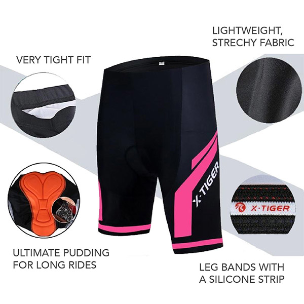 As excelentes calças de ciclismo femininas foram desenvolvidas para atender a todos os tipos de corpo. Feitas de tecido elástico e durável, as calças oferecem um ajuste estruturado e confortável que acompanha os movimentos do seu corpo. Mantêm a forma e firmeza. As bandas nas pernas possuem uma fina faixa de silicone que mantém as calças no lugar durante o pedal. A almofada 3D Coolmax com gel e ventilação aumentada é projetada especificamente para ciclistas femininas. O painel frontal é duplo para evitar que o tecido aperte durante o pedal e proteger os ossos do assento no lugar certo.