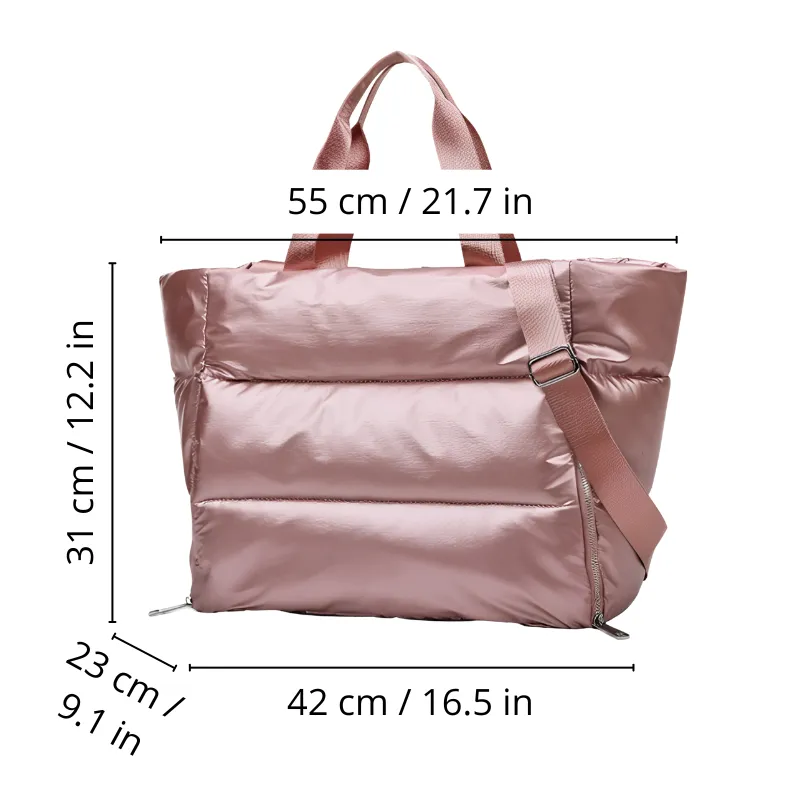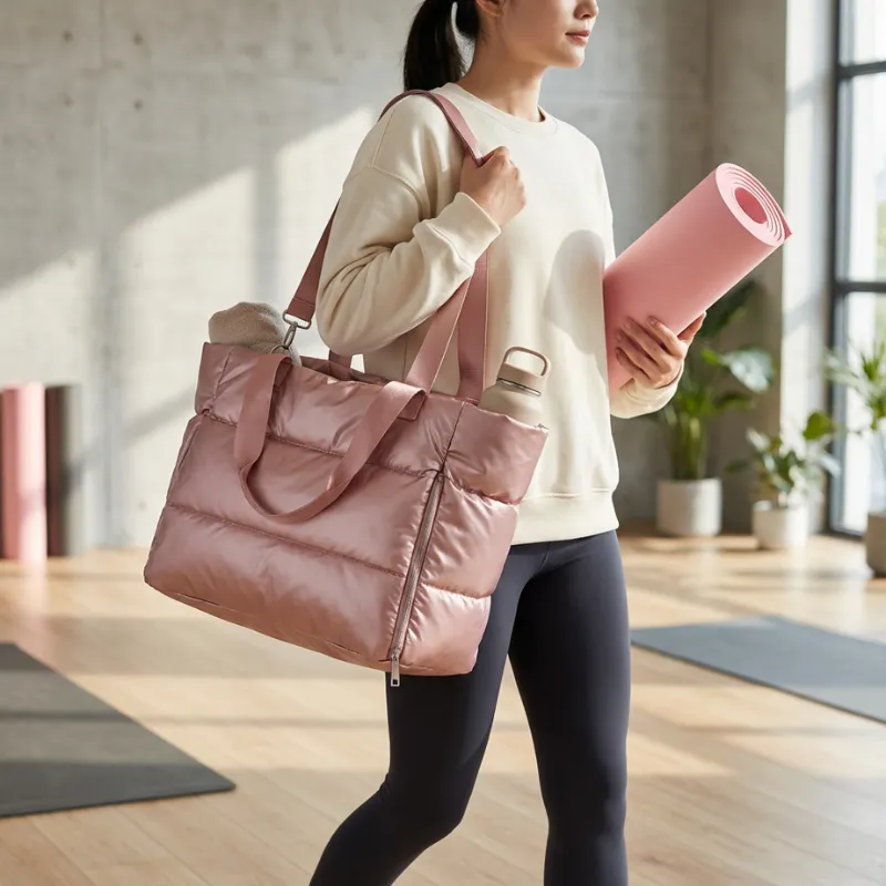 A bolsa carrega tudo para yoga e spinning, até minha toalha grossa! Sempre me sinto pronta para o que precisar.