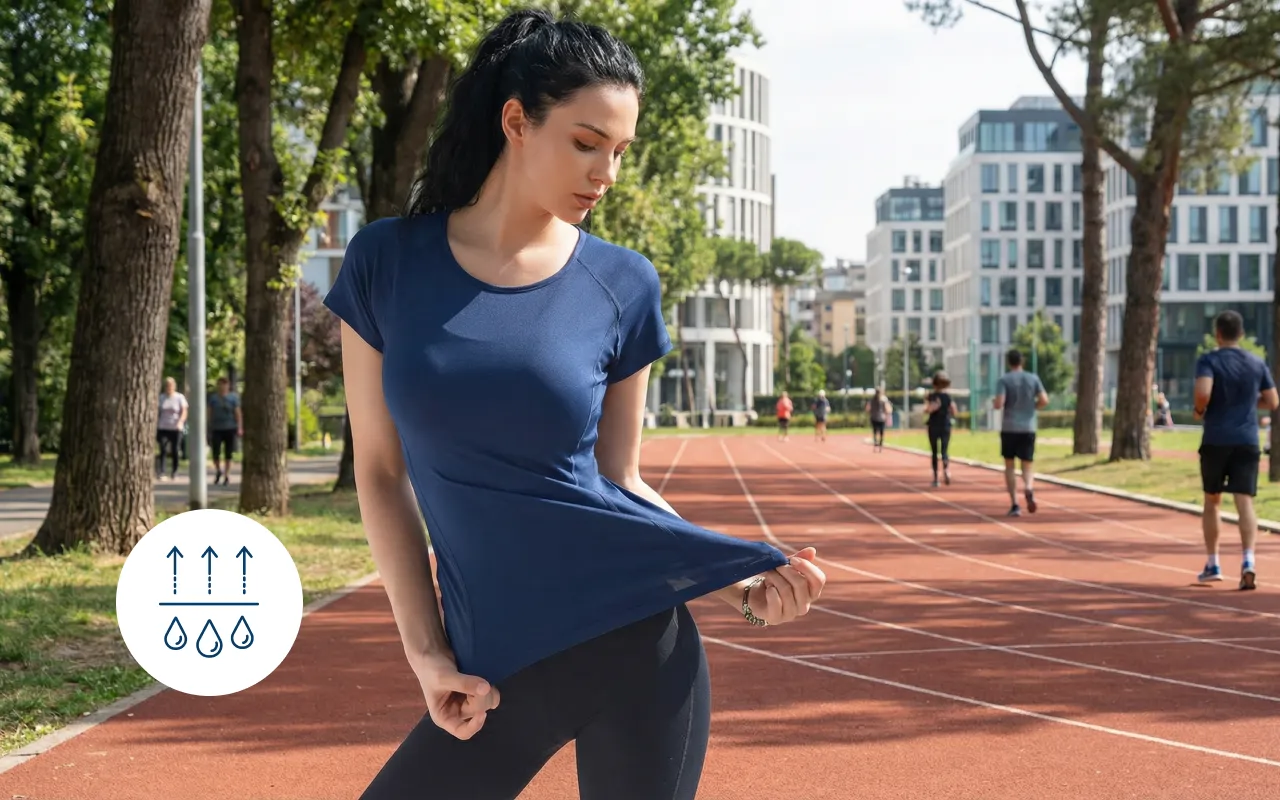 Chega de manchas úmidas ou tecido pesado. O design de secagem rápida mantém você seca e leve.
