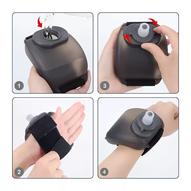 Manter-se hidratado nunca foi tão fácil! A garrafa de pulso Threo oferece acesso rápido à água a qualquer momento. A alça segura mantém-se no lugar durante atividades de alta intensidade.
